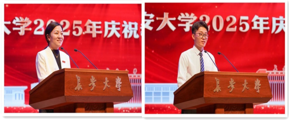 第五届全国高校教师教学创新大赛一等奖获得者张萌代表获奖教师发言。学生代表温明贤代表长大学子向全校教师表达感谢和节日祝福。